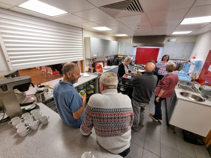 It was a quite pleasant evening, dry and not that cold for this time of the year and we had a nice warm venue waiting. The fit /younger ones soon had tables and chairs out and the kitchen team were equally in place getting started.