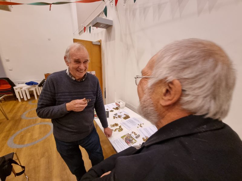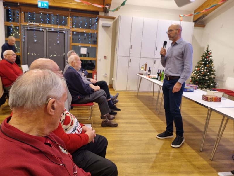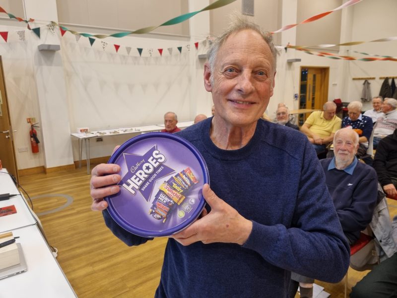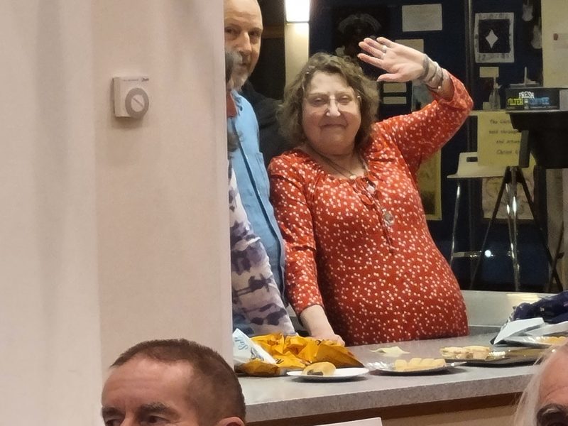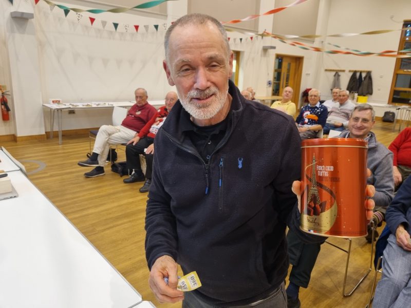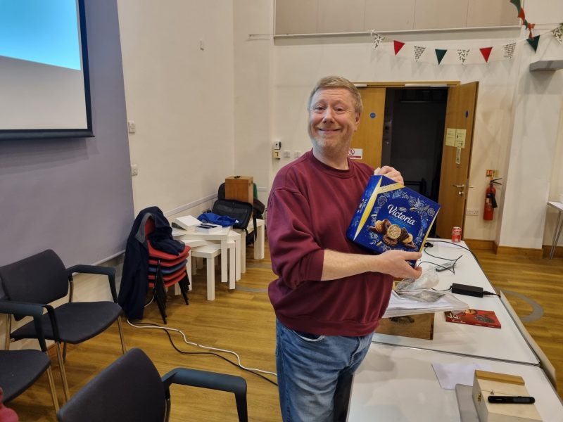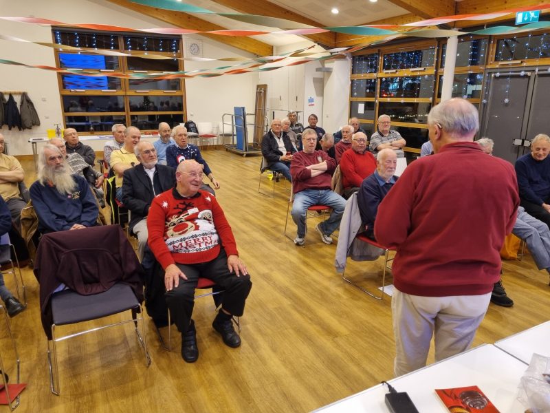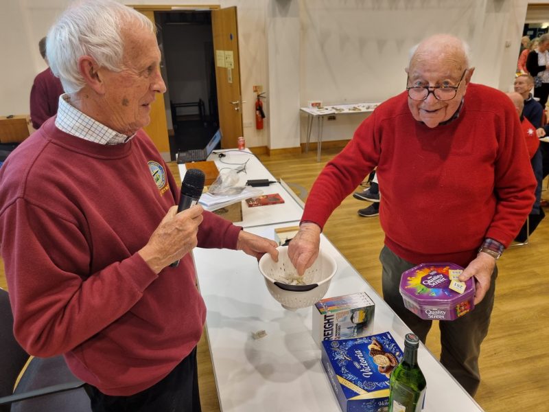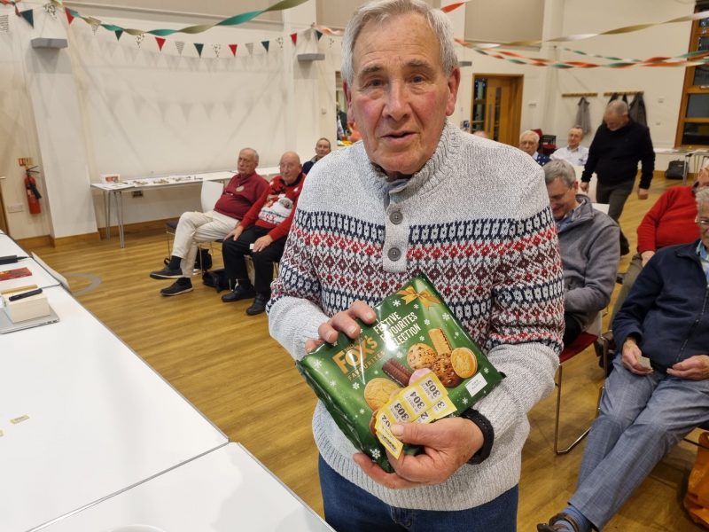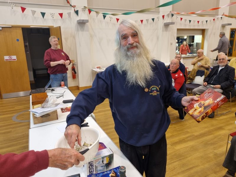 The timing worked out just right, I cannot claim that it was planned, just serendipitous. Tea and coffee were ready with hot sausage rolls, bhajis and those triangular things I can never remember the name of! Mince pies to follow with crisps. The ladies were separately thanked for their endeavours, and soon munching and peace descended but members started chatting again much as usual.