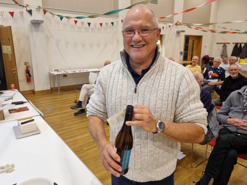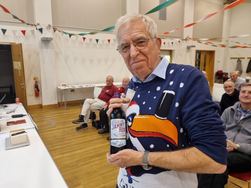 Next, we had our Christmas quiz, 25 easy questions but only if you know the answers! Mike Grossmith was in charge, paper and pens were distributed. Mike read out the questions he had set and we did our best. The winner was behind me somewhere so I missed that but a bottle of wine and a large Toblerone chocolate bar was the prize, with a score of 13 .1/2. It is surprising how hard easy questions are! I did well with 8 and a dodgy half, which was very good for me.