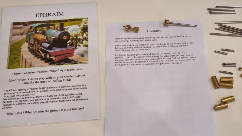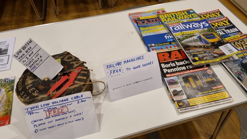 On the tables at the back there was a display of items for members to view and take for free, plus Tony Ashcroft's latest machined parts for the club's Ephraim loco project.