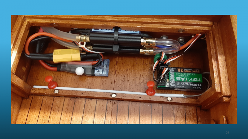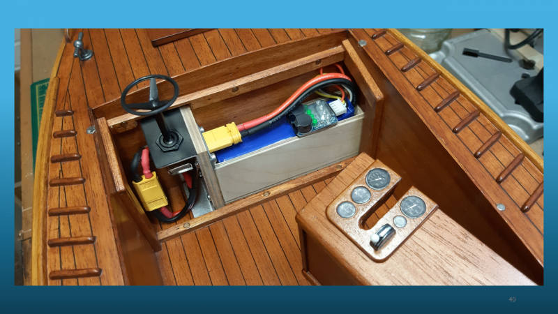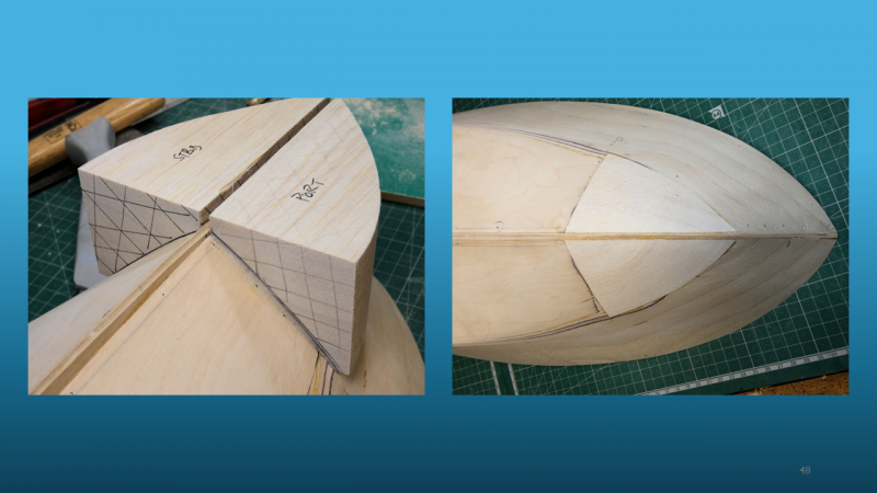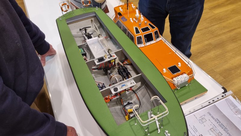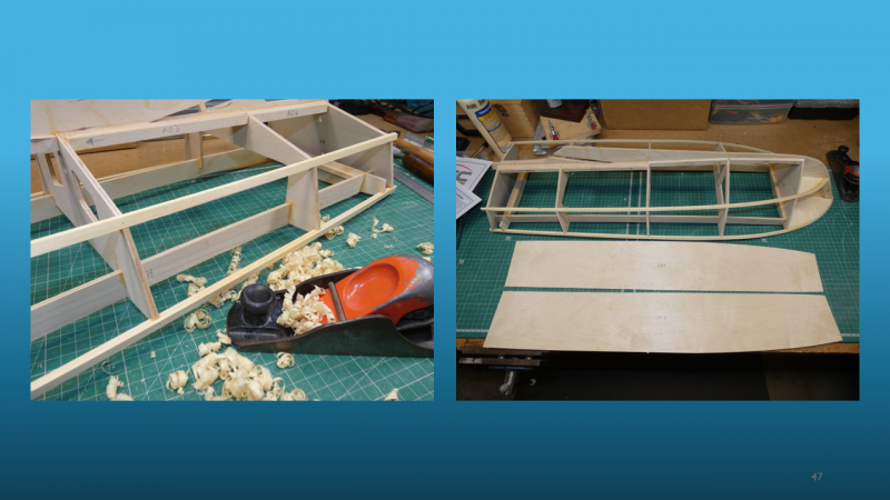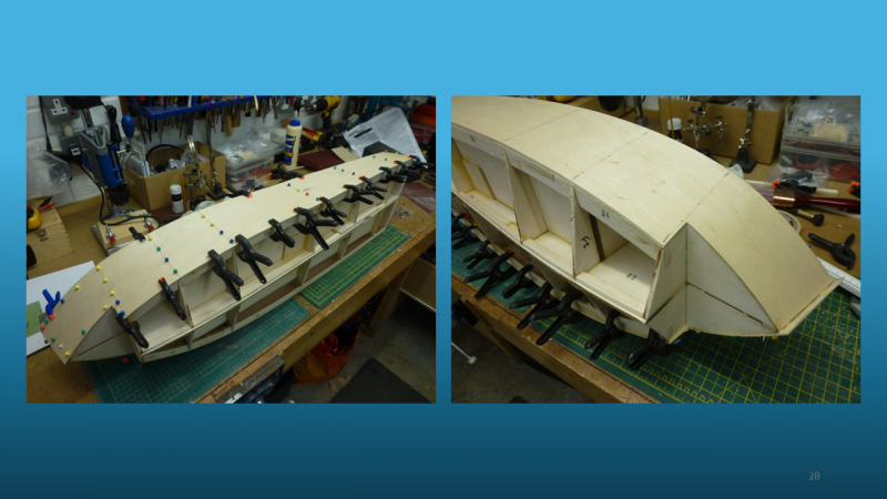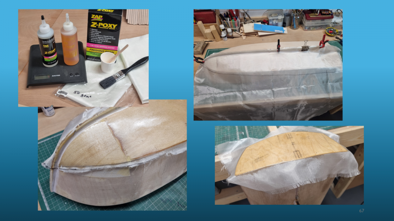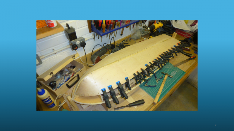 The methods of construction were shown and the way that the build remained square and symmetrical on both sides, keeping the keel locked into a straight line can be easily overlooked. Rob did an excellent job of showing how glass cloth and epoxy resin is used in cladding hulls to increase strength and finish. The method of attachment of removeable hatches and cabins was shown now using easily obtainable and very small neodymium magnets.