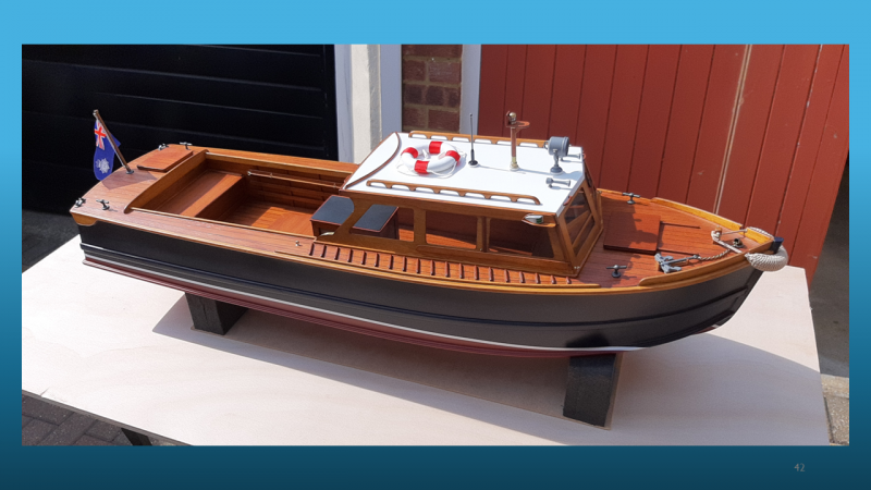 When I approached Rob about his new project, already running on a model boat web site, he told me that half an hour was all he could do! So, I had backup arranged, 'just in case'. However, it was just not needed! Rob had decided to 'tell all’, and we were treated to a trip of the last 10 years through Rob's return to model making in retirement and then enjoyment of building model boats again. As could be seen from the models on display he has a talent for it, and it shows. When a kit manufacturer is impressed then you have cleared the bar as far as feedback is concerned.