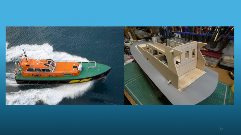 Rob was confident and clear in his presentation with photos from the construction of his models, this developed into a more critical view of models when he re-designed the superstructure of his Southampton Pilots Boat and tried his hand at scratch building a new deck and cabin for the boat that better represented the modern type of craft. Most kits will carry the character of a model but skip on some of the detail and more complex parts of the model.